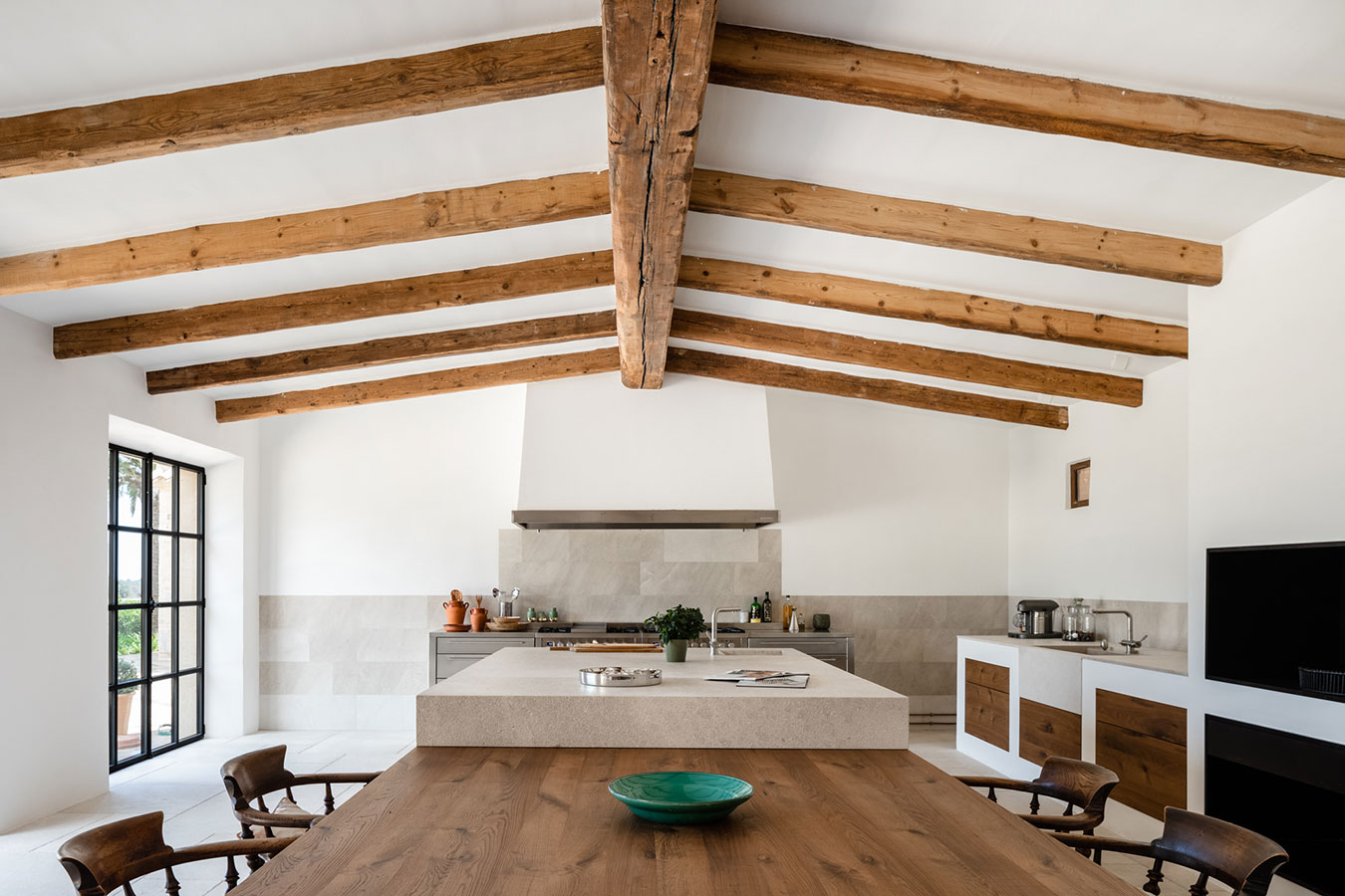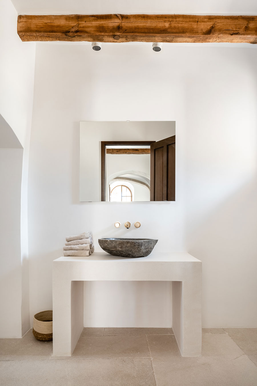 The main challenge here was to preserve the existing walls while conducting the renovation as traditionally as possible, using materials like restored old wooden beams.